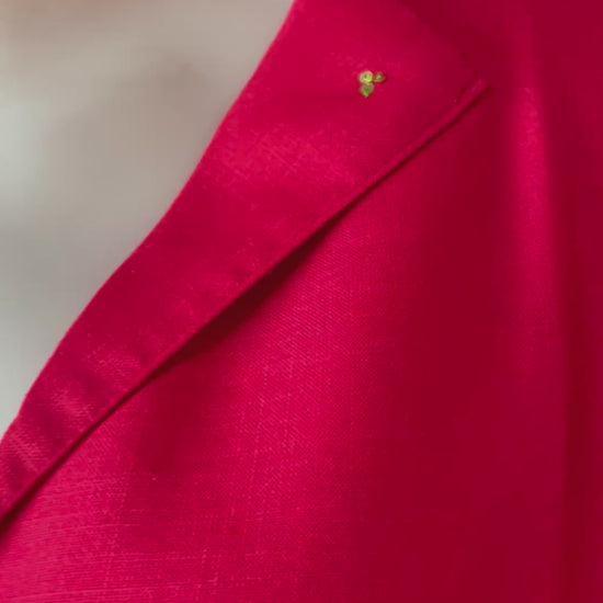 Silver Lining presents a graceful 3-piece suit set featuring a rich red kurta adorned with hand-painted and intricately embroidered lotus motif, paired with matching straight pants. Styled with a beautifully printed dupatta in traditional hues, this ensemble blends artistic charm with ethnic elegance—perfect for festive and cultural occasions.